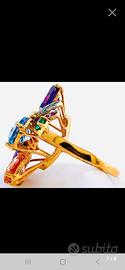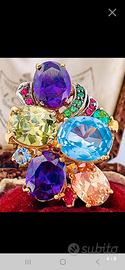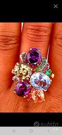 Questo elegantissimo anello in oro 9 kt e argento, con pietre naturali miste,fornito di certificato è qualcosa di davvero sorprendente. Le nuance miste delle pietre naturali creano un gioco gioioso e, difficilmente,si può passare inosservati. adatto ad ogni tipo di look è l'anello giusto per te!