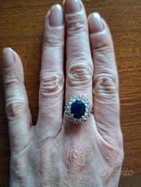 Bellissimo anello in oro giallo 9k. Pietre: Zaffiro e topazi. Misura 13 italiana. Peso 2,75 grammi. 3,5 kt totali