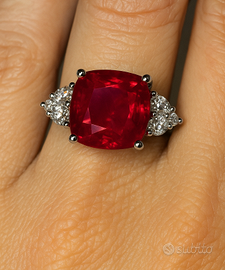 Vendo anello in oro bianco 14Kt con rubino naturale da 10 carati e 0,80 carati di diamanti naturali F/VS (6 pietre) Un gioiello importante, luminoso, costruito con materiali veri e finiture di alto livello: un pezzo da gioielleria che fa scena, valore e presenza al primo sguardo. Questo non è un anello “commerciale”: è un solitario di grande impatto, con un rubino enorme, rosso vivo, montato su una struttura solida in oro 14 kt e arricchito da diamanti bianchi F/VS che amplificano luce e profondità. CARATTERISTICHE TECNICHE • Oro bianco 14 kt 3.5 gr circa • Rubino naturale 10 carati – trattamento al borace (glass filled) • Diamanti naturali 0,80 ct totali – colore F, purezza VS • Montatura importante, elegante e solida • Gioiello luminosissimo, perfetto da regalare o indossare VALORE E OCCASIONE In gioielleria un anello di questo livello supera gli 8.500 euro (non è una stima: è la realtà del mercato). Io lo propongo a 3.500 euro per svendita dei materiali realizzati per presentazione. Un prezzo introvabile, perché il valore è reale: oro, diamanti selezionati e un rubino enorme e spettacolare. PERCHÉ È UN’OCCASIONE DA PRENDERE SUBITO – Rubino da 10 carati: rarissimo da vedere montato – Diamanti F/VS: qualità alta, bianchi e brillanti – Oro 14 kt: montatura massiccia, non cava – Estetica da alta gioielleria – Perfetto come regalo importante, anniversario, proposta, ricorrenza – Pezzo unico: quando venduto, non ce n’è un altro CONTATTO DIRETTO Scrivimi subito per foto, video in luce naturale o per fissare un incontro. L’anello è molto più bello dal vivo: se sei alla ricerca di un regalo che faccia effetto, questo è il gioiello giusto. Disponibilità immediata – consegna a mano preferita - si permuta o scambia con oggetti di mio gradimento e di valore verificabile o con oro vecchio!