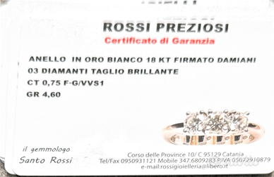 03 diamanti taglio brillante CT 0,75 F-G/VVS1 GR 4,60 €1.750.00