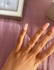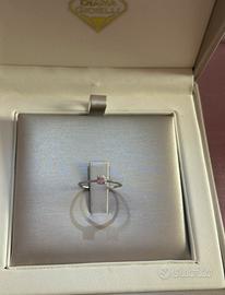 Vendo anello di fidanzamento in oro bianco 18 kt con brillante rosa centrale. Misura italiana 15/16 (diametro interno 17,7 mm). L’anello è nuovo, mai indossato, con cartellino e confezione originale. Condizioni perfette, ideale come regalo. Prezzo trattabile. Consegna a mano o spedizione sicura.