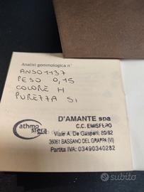 Anello in Oro Bianco con Diamante. Analisi Gemmologica: ANSO: 1137 PESO: 0,15 COLORE: H PUREZZA: SI Vendo con certificato.