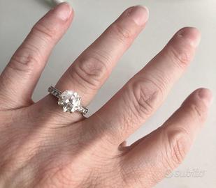 Euro 1200 trattabili* Anello in oro bianco con moessanite da 2 carati misura 12 ha 4gr. di oro con 27 brillantini naturali a pavè tutto giro anello. con suo certificato di provenienza pietra e numero seriale Come nuovo! Visione senza impegno di acquisto a Padova città. Cortesemente per info o richieste scrivere in messaggio privato trattabili* si ma non molto, perchè facendo due conti, ci sono più di 400euro di oro e palladio, 400euro di diamanti a pavè (da 0.5pt) e 240euro il costo della pietra moessanite da 2 carati, più la manifattura ovviamente.