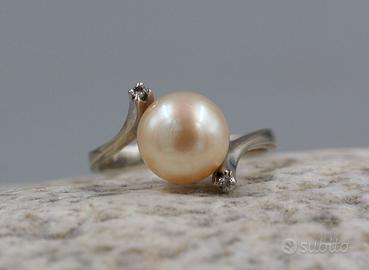 Anello IN Oro Bianco Con Perla E Brillanti