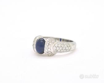 Bellissimo anello in oro bianco 18 carati (750/000) peso totale 8,2 grammi, con zaffiro e diamanti.