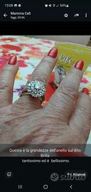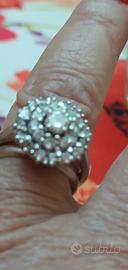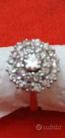 anello in oro bianco molto bello a corona e forma di margherita, con diamanti punto g puri, inseriti a giro e uno centrale,