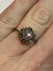 Bellissimo anello in oro bianco 750 con rosa di diamante.