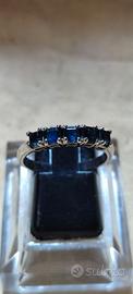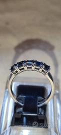 Anello in oro bianco con 5 zaffiri blu quadrati peso oro 18 kt 4 gr misura 16