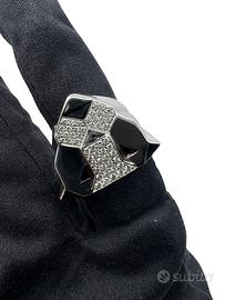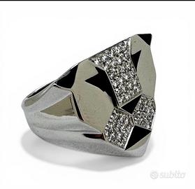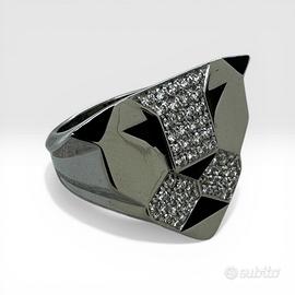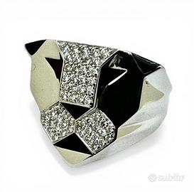 anello in oro bianco 750 “Gianni Bulgari”peso grammi 14,40 con incastonati diamanti taglio brillante del peso totale di 0,80 carati colore I-K purezza VS-SI e smalti misura 17/57 possibilità di finanziamento spedizione tracciata e assicurata