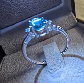 meraviglioso anello in oro bianco acqua marina delle dimensioni di 5×7millimetri, e due piccoli diamanti laterali, non dispone di certificazione