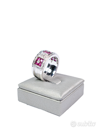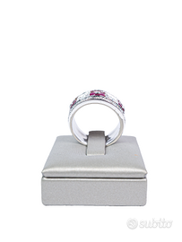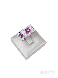 Anello in oro 750 18kt con rubini di massa complessiva stimata 1.08ct e pavè di diamanti di massa complessiva stimata ct.0.33, colore e purezza stimate GH-VS.
