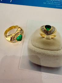Anello in oro giallo 750%o del peso di gr. 14,2 con incastonato al centro una gemma taglio a goccia sfaccettata, di colore verde trasparente, che all'analisi risulta essere un berillo naturale, varietà smeraldo.