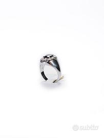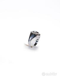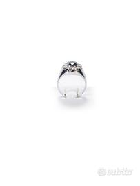 Anello chevalier in oro bianco 750 18k con zaffiro di massa stimata 1.52ct e diamanti di massa complessiva stimata 0.50ct, colore e purezza stimate GH-VS.