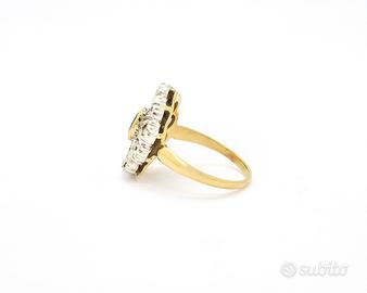 Bellissimo anello in argento e oro 18 carati (750/000), peso totale 4,9 grammi, con zaffiro Ct 0,50 e diamanti Ct 0,25.