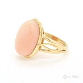 Anello in oro giallo 18 carati con corallo rosa, dal peso complessivo di 9,1 grammi. La montatura, dal design particolare e innovativo, esalta la bellezza naturale del corallo rosa, creando un gioiello elegante e sofisticato. Perfetto per chi cerca un accessorio esclusivo, questo anello unisce tradizione e modernità in un pezzo unico, ideale per ogni occasione speciale.
