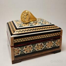 Anello capolavoro in oro 18 carati - Replica dell'anello reale di Sapore I, imperatore sasanide di Persia (epoca dell'Impero Romano) e ispirato a un'antica moneta di Sapore I sasanide (epoca romana, 224 d.C.).