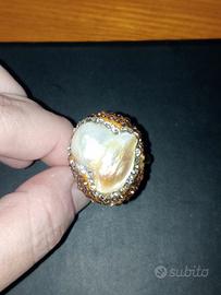 anello in ottone con perla barocca naturale