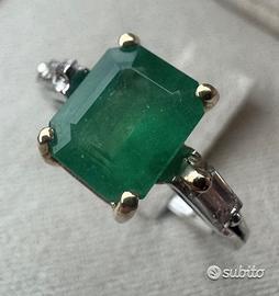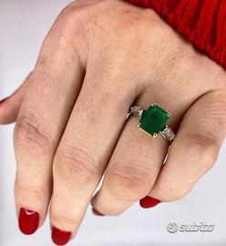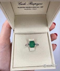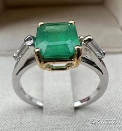 Anello in platino oro diamanti e smeraldo brasile