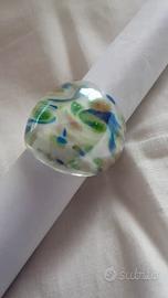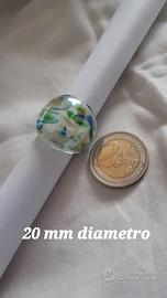 Anello in vetro con base trasparente e decorazioni interne astratte nei toni del blu, verde e bianco latte. Design originale e luminoso, con forma bombata che valorizza i colori e riflette la luce. Perfetto come accessorio particolare e creativo. Diametro interno: 20 mm. In ottime condizioni, nuovo. #anello #anelloinvetro #vetroartistico #bijoux #accessori #gioielli #multicolor #stileoriginale #vinteditalia #modadonna