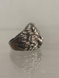 Anello in argento 925 raffigurante un leone.