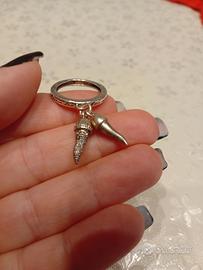 Anello Liu Jo con cornetti pendenti. Uno è semplice, l' altro intarsiato con brillantini. Senza scatola Misura 18/19