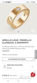 Vendesi anello Love Cartier 3 Diamanti in oro giallo.