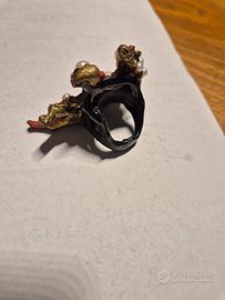 Bellissimo anello bigiotteria, resina, perle e pietre
