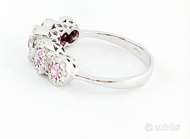 Anello modello magic da Donna con Zaffiro Rosa centrale ct 0,69 e contorno di Diamanti naturali ct 0,40 lavorato in oro Bianco 18kt-750 - Grammi 3,40