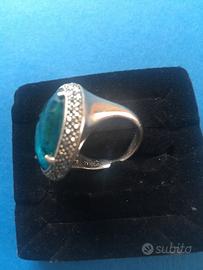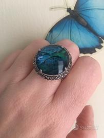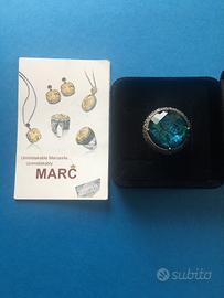 Bellissimo Anello in argento 925 marchio MARC originale con doppietta di Abalone e cristallo di rocca taglio rotondo a scacchiera con doppia cornice di Swarovski Marcasite. Misura 18, massiccio, acquistato su QVC