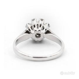 Elegante anello margherita in oro 18 carati impreziosito da un diamante centrale da 0,15 carati circondato da diamanti laterali per un totale di 0,40 carati.