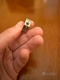 Anello argentato con simbolo marijuana. Taglia da controllare...