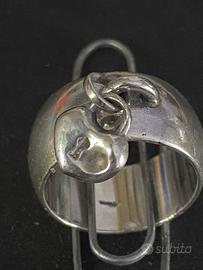 Anello Miluna a fascia Argento 925 tg. 15, diametro interno 18mm circa, peso 11 Gr. con ciondolo a forma di cuore - lucchetto.