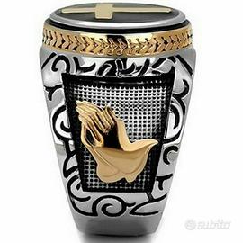 Anello di ottima qualità con il colore argentato decorato con il dorato .