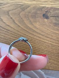 Vendo per inutilizzo anello pandora originale misura 52 (equivale ad un 12) l anello appare come lo vedete in foto, manca un brillantino ma essendo la parte inferiore del nodo, indossato (come vedete dalle foto) non si vede
