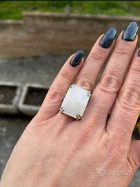 Anello in metallo anallergico con incastonata una pietra baguette sfaccettata di opale bianco lavorazione artigianale