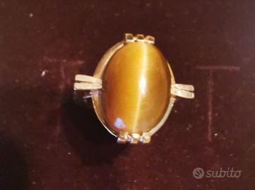 Anello stile liberty in oro 14 kt con pietra occhio di tigre, che ha benefici effetti sul fisico secondo la cristallo terapia. Misura 2 cm x 1,5 cm, ottime condizioni peso circa 7 - 8 grammi. Molto ben costruito, struttura solida.