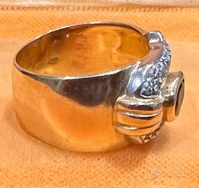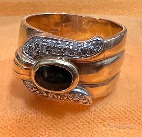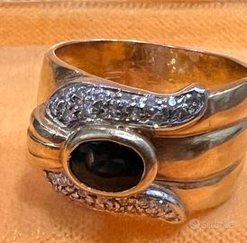 Anello a fascia con grande zaffiro e diamanti taglio brillanti