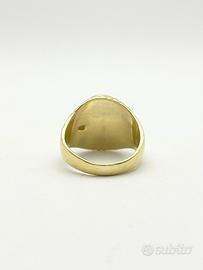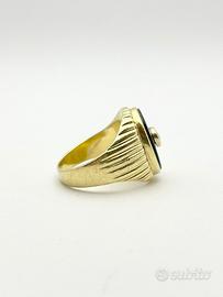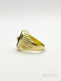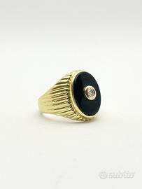 Anello in oro giallo 18KT (750 ‰) di grammi 11.82 impreziosito da diamante naturale forma tonda e taglio a brillante e onice naturale, epoca 1950.