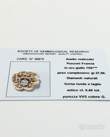 Anello in oro bianco 18 kt( 750 ‰ ) di grammi 27.00 con diamanti naturali taglio brillante per complessivi ct. 0.40 circa purezza VVS colore G. Punzoni Francia.