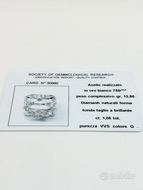 Anello in oro bianco 18 kt( 750 ‰ ) di grammi 13.50 con diamanti naturali taglio brillante per complessivi ct. 1.05 purezza VVS colore G.