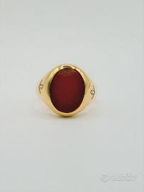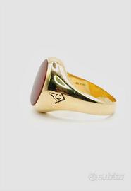 Anello da uomo in oro 18 KT ( 750 ‰ ) e pietra con stemma della Massoneria di grammi 14.70.
