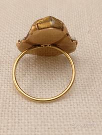 Anello in oro 18k realizzato con una decorazione cinese primi ottocento. Condizioni perfette. Euro 480 non trattabili. Sempre disponibile per ulteriori foto o7 informazioni. Si invita a non fare offerte ridicole. Si tratta di un'opera d'arte di duecento anni fa. Diametro interno mm. 16.6 corrispondente alla misura 12. Gr. 5,3.