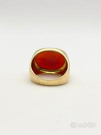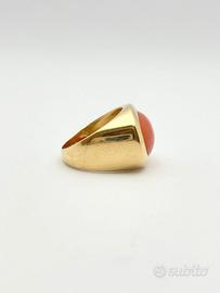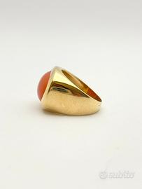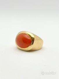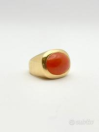 Anello in oro giallo 18KT ( 750 ‰ ) di grammi 12.70 impreziosito da corallo naturale taglio cabochon, epoca 1950.