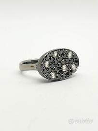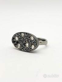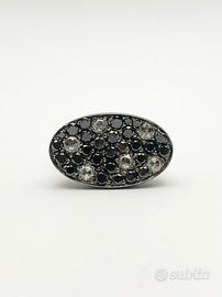 Anello in oro brunito 18 KT ( 750 ‰ ) di grammi 8,60, con diamanti naturali neri di ct.1,10 e diamanti naturali taglio a rosetta di ct.0,50.