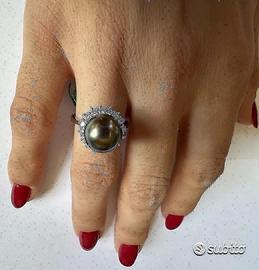 E PERLA TAHITI NATURALE DI COLORE VERT BRONZE