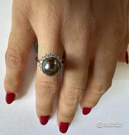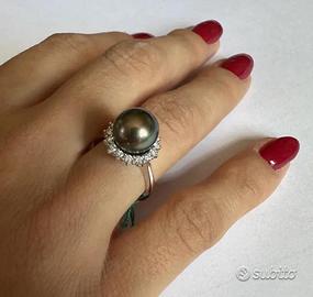 ANELLO IN ORO BIANCO 750°/°° - 18 carati CON DIAMANTI* NATURALI TAGLIO BRILLANTE E PERLA TAHITI NATURALE DI COLORE VERT BRONZE 16 DIAMANTI ct. : 0,38 / Colore : G / Purezza : VS PERLA ct. : 7,00 e gr. 1,40 e diametro mm. 9,2 PESO ORO gr. : 4,50 MISURA DEL DITO: 15 ( possibile cambiare misura dell'anello per qualsiasi informazione contattateci) altre foto a richiesta via email spedizione con assicurata tramite Poste Italiane