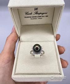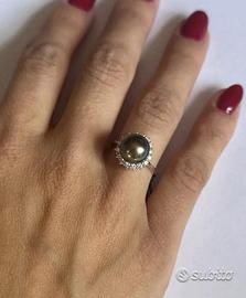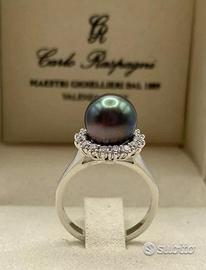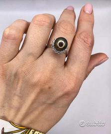 ANELLO ORO 18kt. CON DIAMANTI E PERLA TAHITI