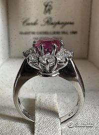 ANELLO ORO 18kt. CON DIAMANTI E RUBINO BIRMANO