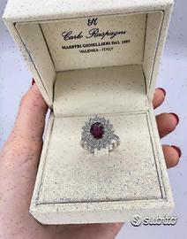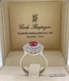 ANELLO ORO 18kt. CON DIAMANTI E RUBINO NATURALE