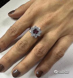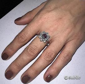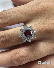 ANELLO ORO 18kt. CON DIAMANTI E RUBINO NATURALI